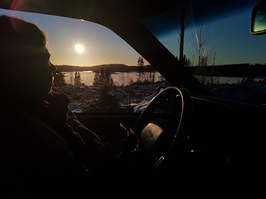 Jul och nyår hade passerat och vi var sugna på en utflykt med jeepen igen. Den här gången bar det iväg norr om Filipstad till något som heter Nordmarken. Lite fika i bilen och vackra vyer.